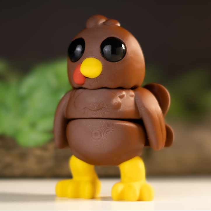 Unser 3D-gedruckter Flexi Truthahn begeistert mit seinem flexiblen, gelenkigen Design. Flügel, Beine und Kopf lassen sich drehen, biegen und in verschiedene Posen bringen – ideal zum Spielen, Sammeln oder als niedliche Deko für Herbst und Thanksgiving.